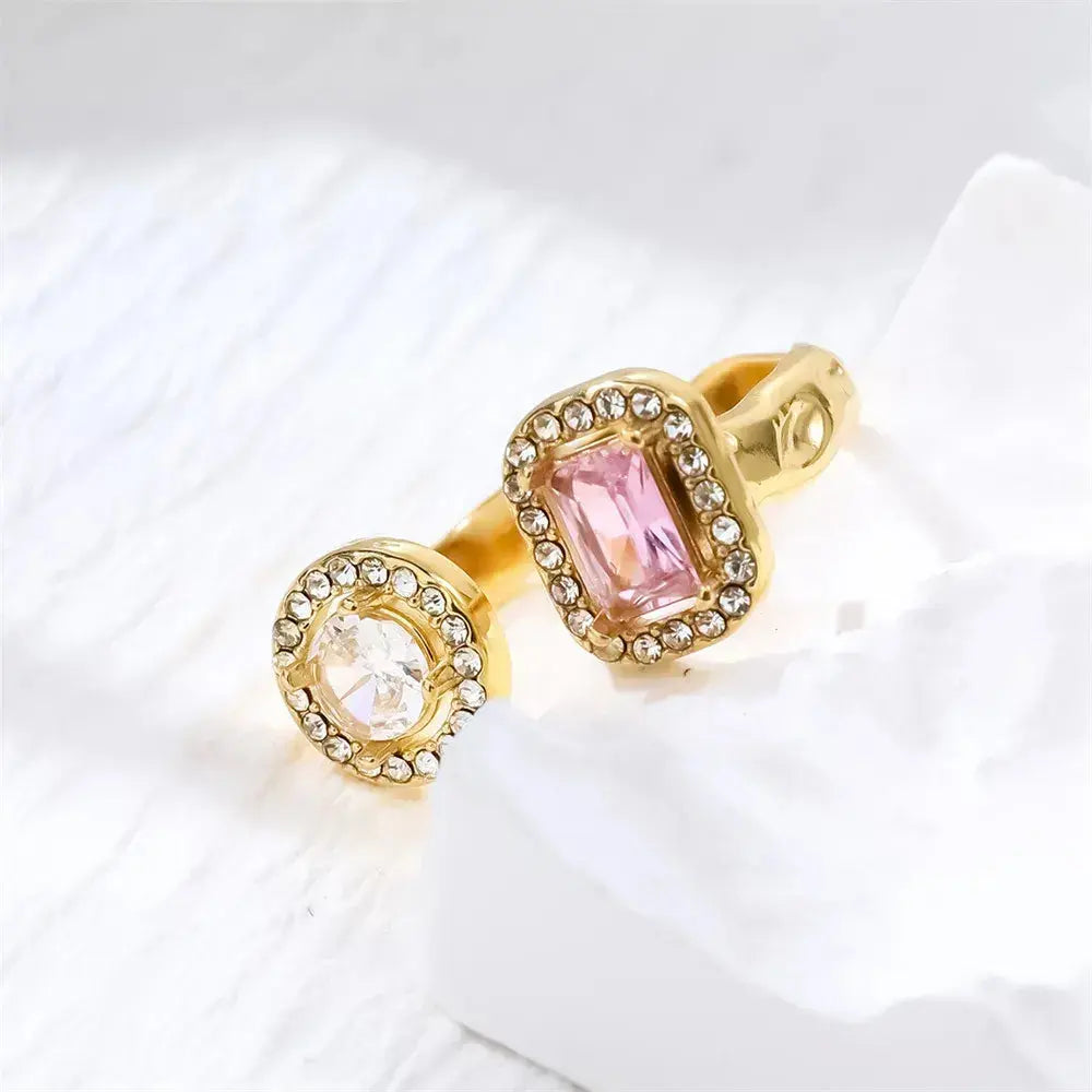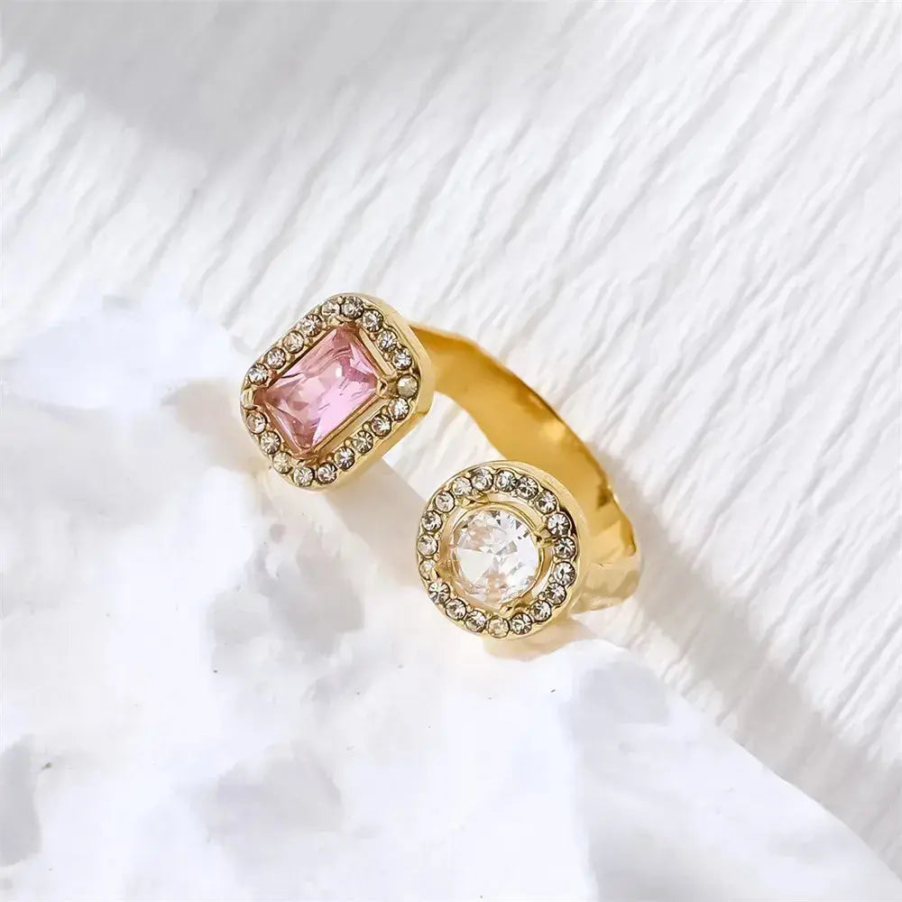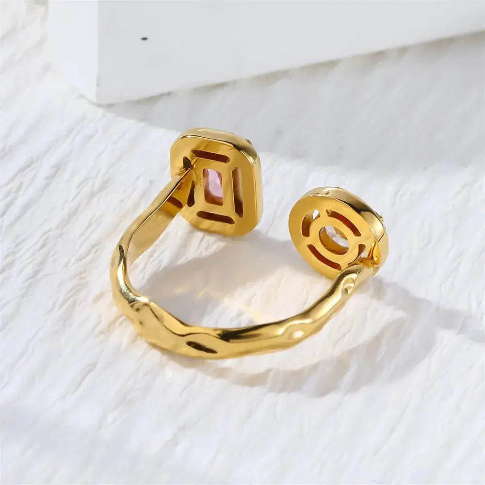 Bague Ajustable – 2 Zircons Blanc & Violet – Acier Inoxydable "Royale doré"