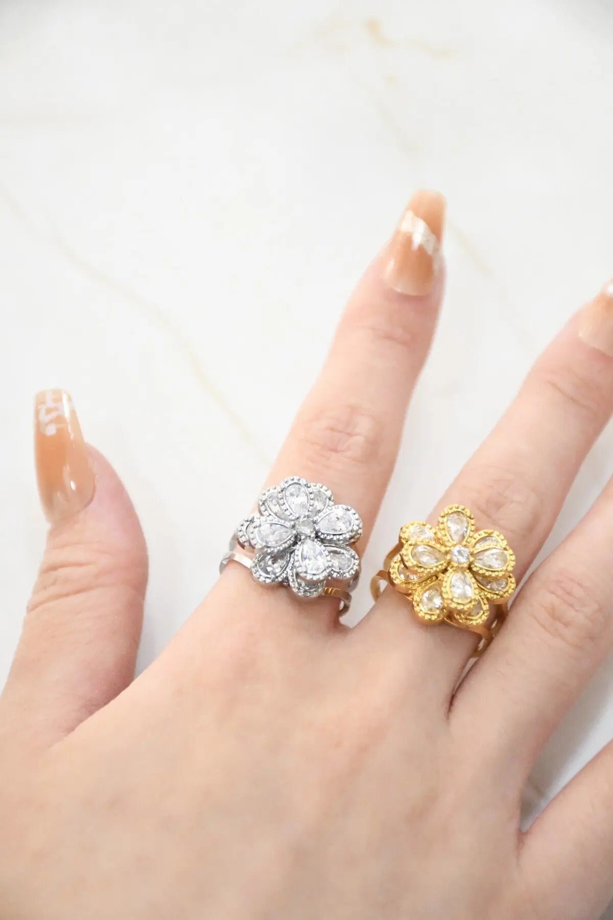 Bague anti-stress fleur Argentée en acier inoxydable ajustable – Strass blanc, Automne/Hiver "Gunia" 2025/2026