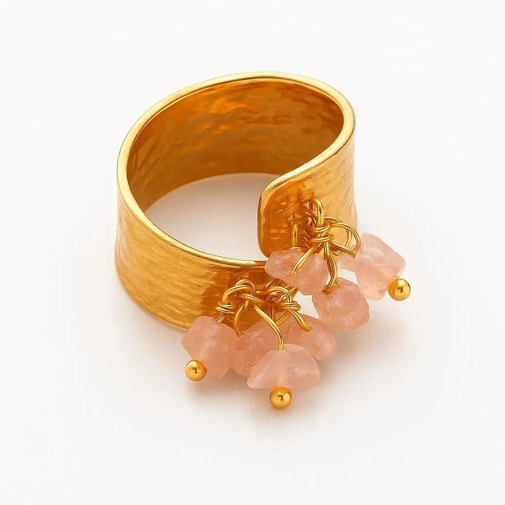 Bague Martelée Dorée Ajustable – Pampilles Roses | Acier Haute Qualité "Susanita"