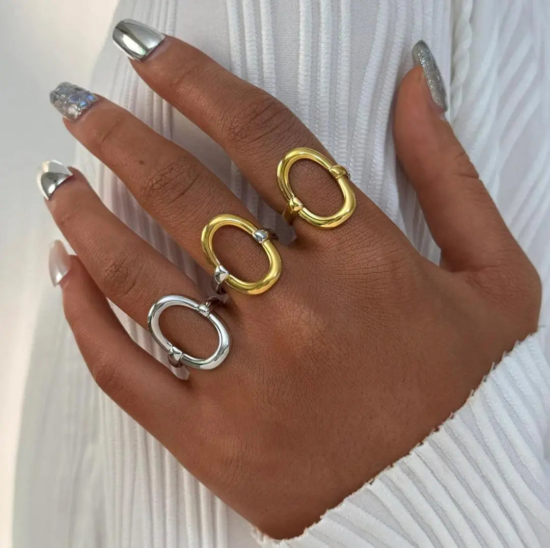 Bague Ovale Bicolore – Acier Inoxydable Doré & Argenté
