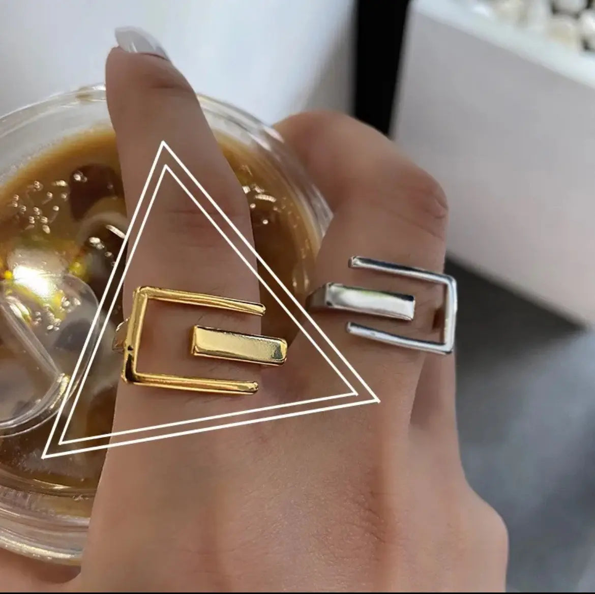 Bague Rectangle Dorée Ajustable – Design Original & Moderne "Abigail"