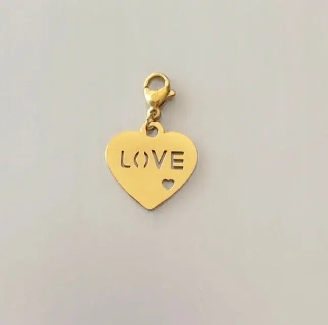 Ajoutez une touche de douceur et de romantisme à vos bijoux avec ce charm en forme de cœur plein, délicatement gravé du mot “love” à l’intérieur. Ce charm symbolise l’amour universel, qu’il soit pour soi, pour un proche ou pour la vie. Grâce à son mousqueton doré pratique, il se clipse en un clin d'œil sur votre collier, bracelet ou chaîne de cheville, sans avoir besoin de les retirer.