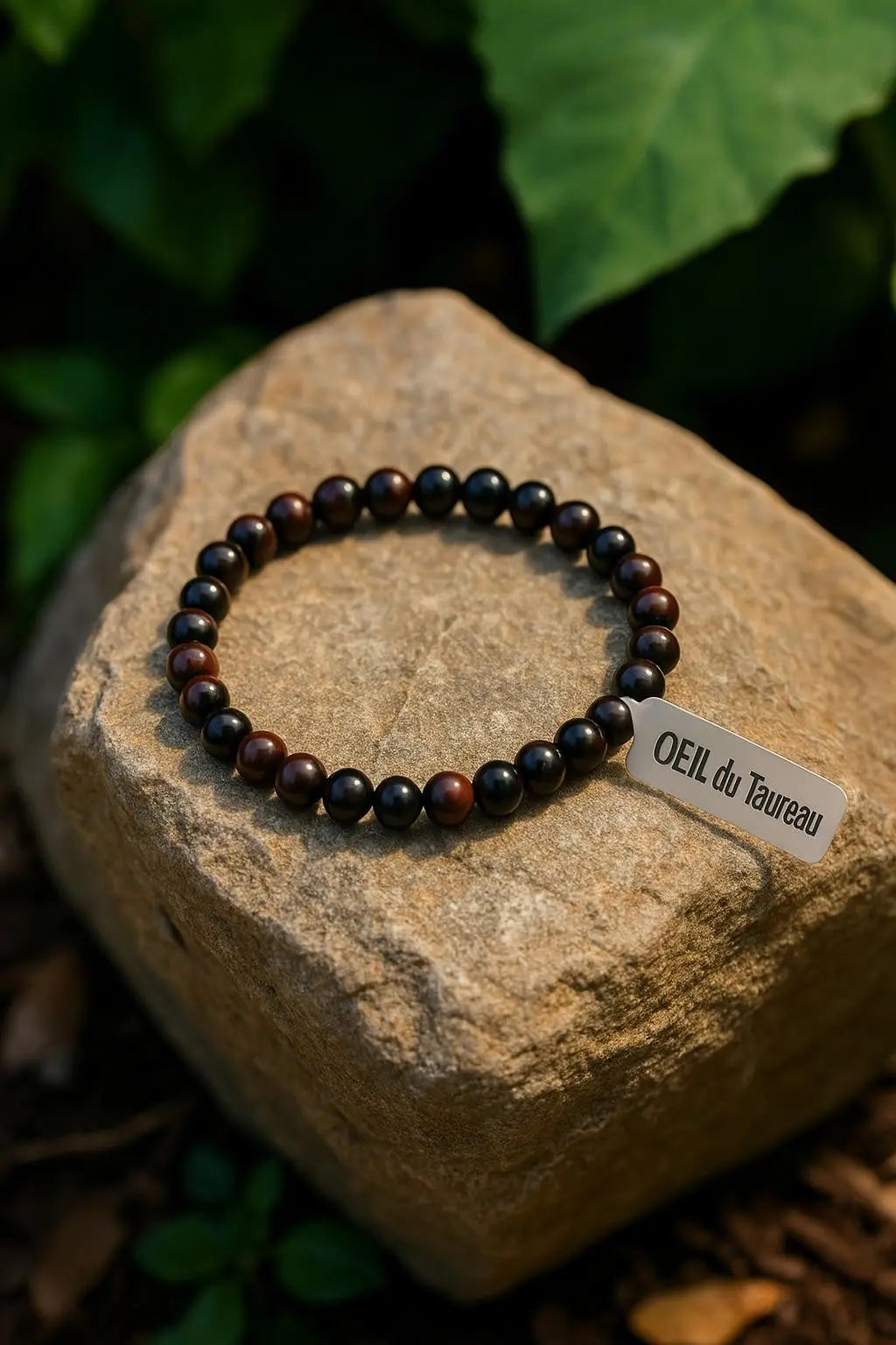 Bracelet en Perles Naturelles Œil du Taureau – Énergie & Protection