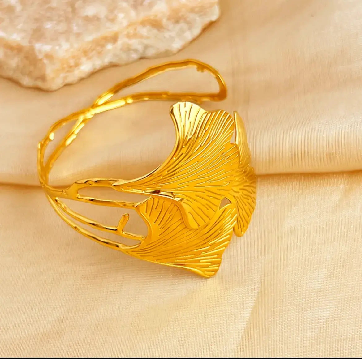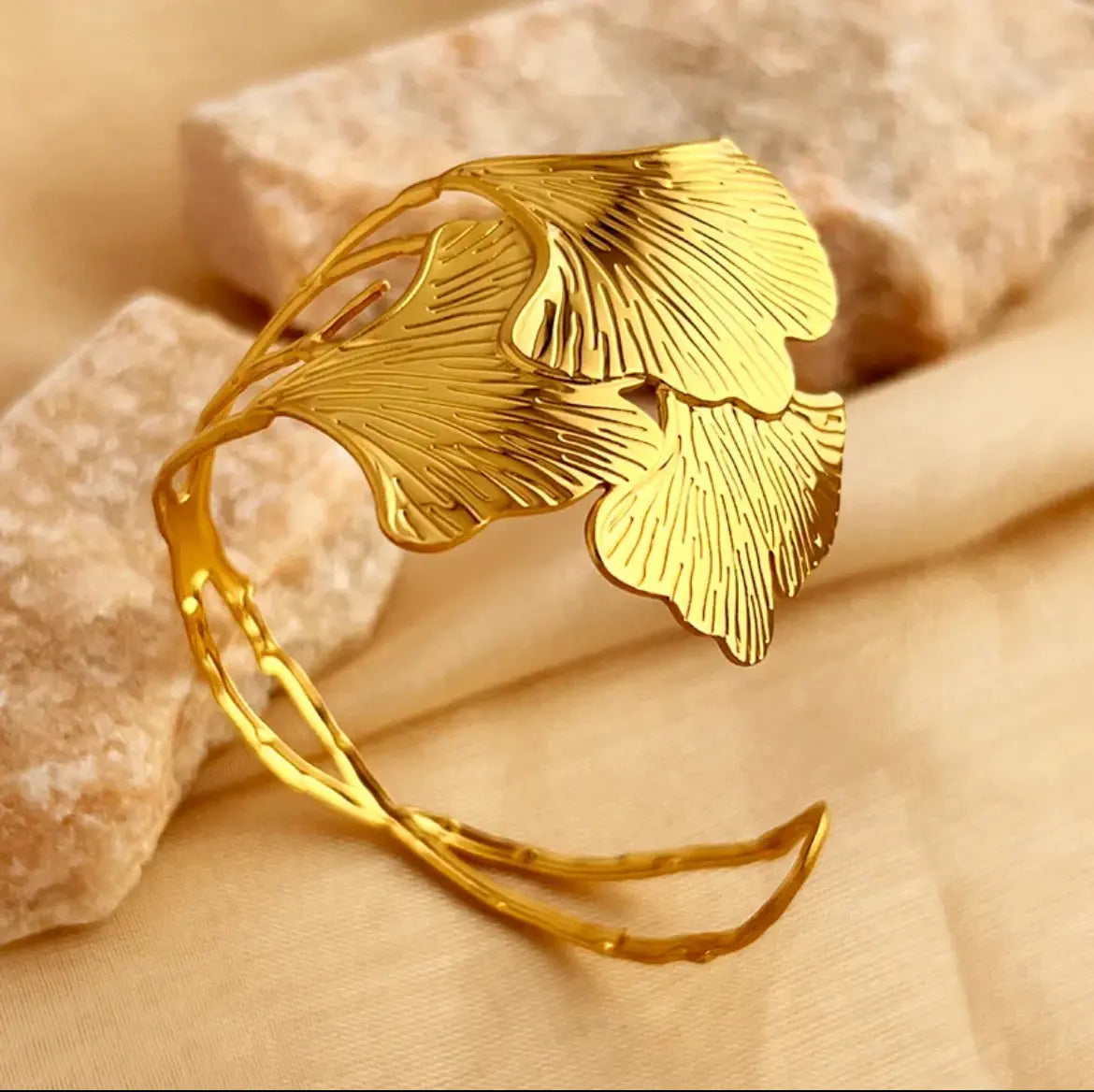 Bracelet Jonc Doré Feuille Hawaïenne – Acier Inoxydable "Sarah"