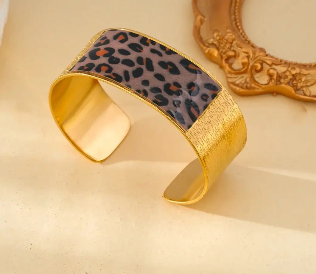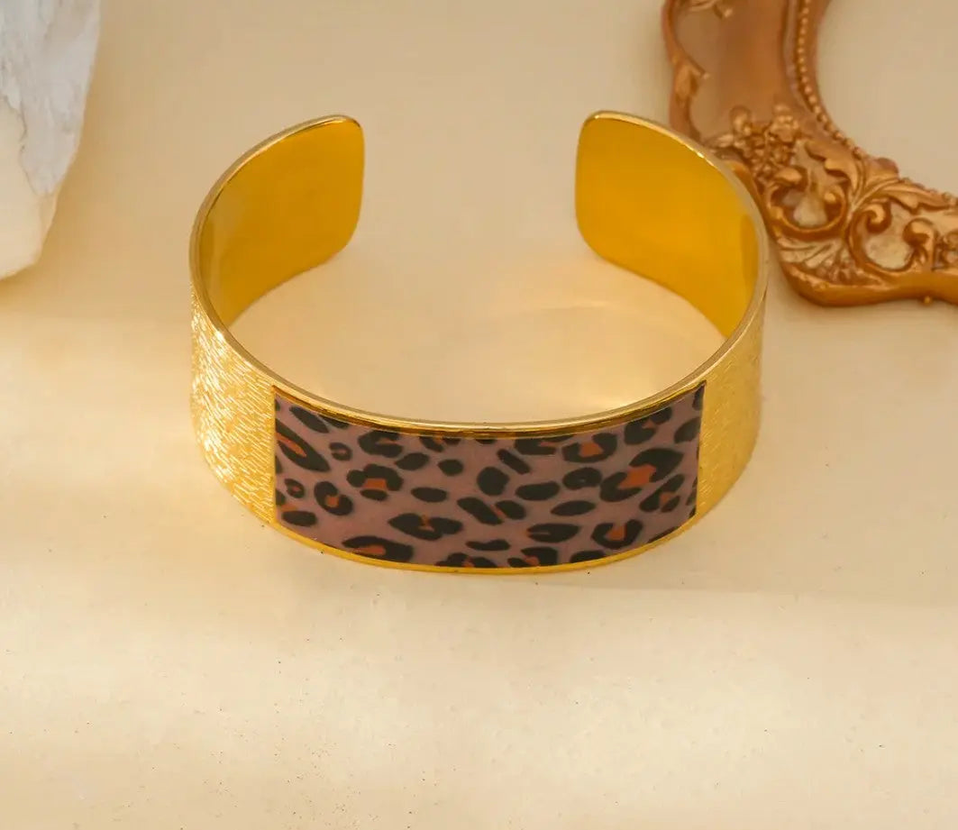 Laissez-vous séduire par l’élégance sauvage de ce bracelet jonc ouvert en acier inoxydable doré, sublimé par un motif léopard au centre et un effet strié délicat sur les côtés. Un bijou tendance et sophistiqué, idéal pour rehausser toutes vos tenues, du look casual au plus habillé.