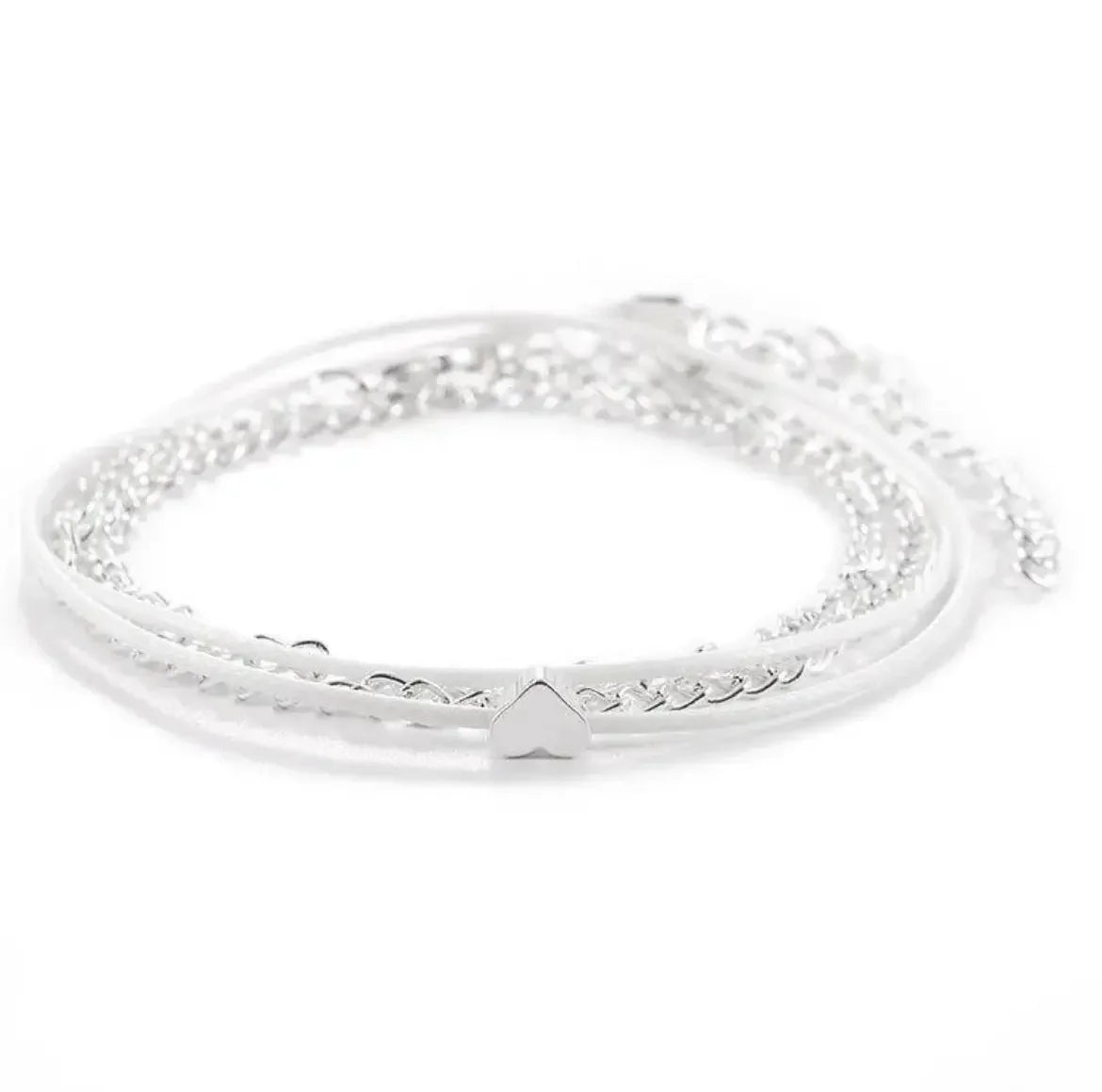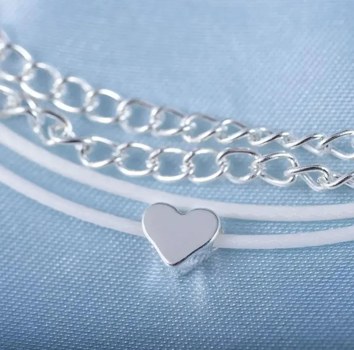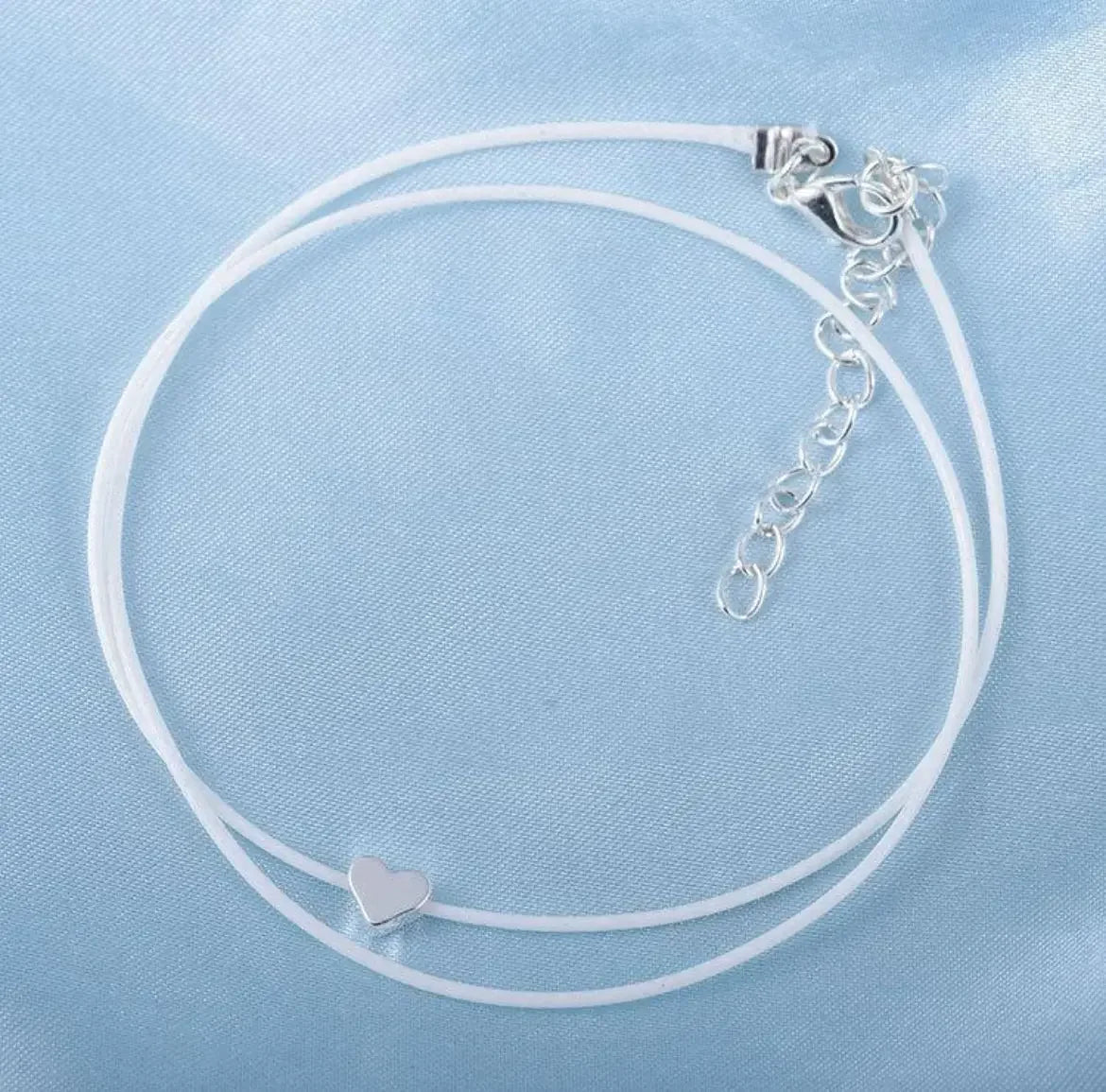Optez pour un style délicat et moderne avec cette chaîne de cheville double, composée d’une chaîne argentée fine et d’un cordon blanc tressé, orné d’un petit cœur argenté brillant. Une combinaison élégante entre le métal et le textile, parfaite pour un look minimaliste, romantique et tendance.