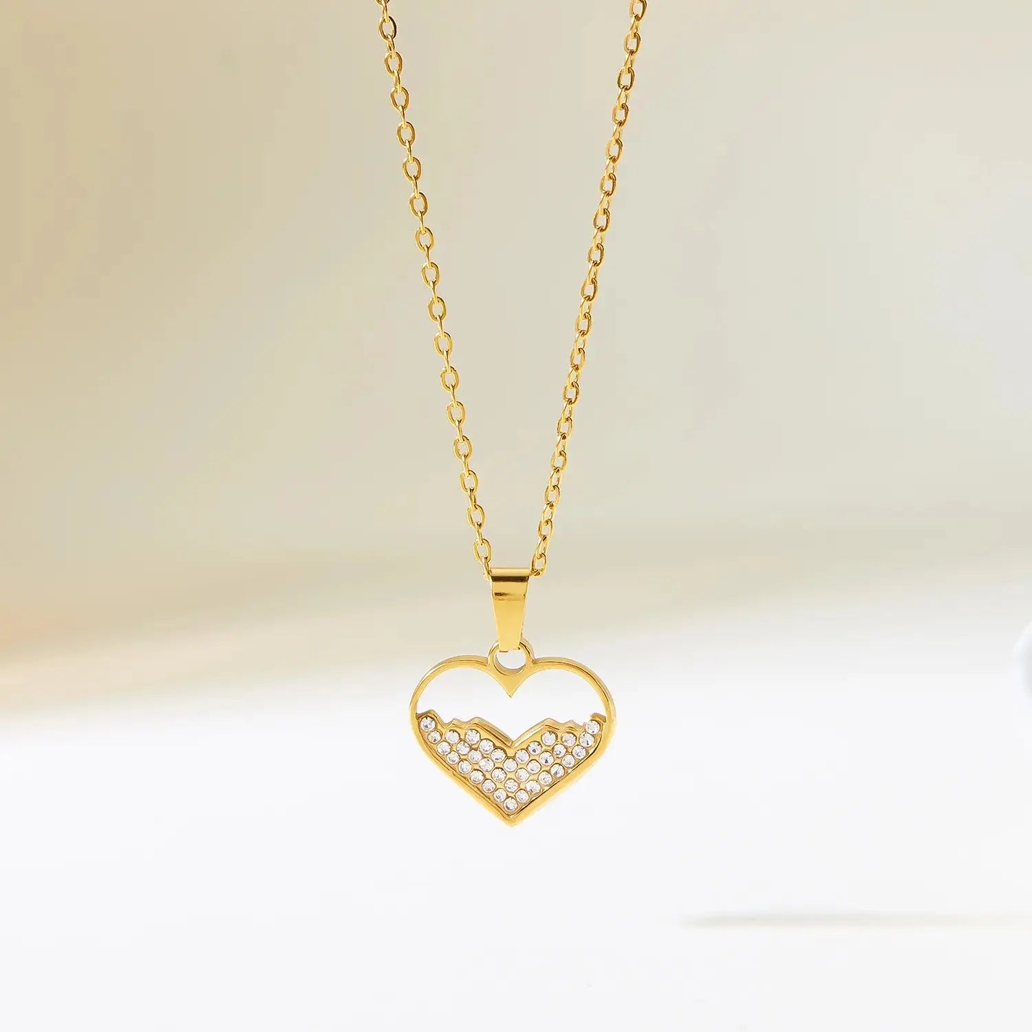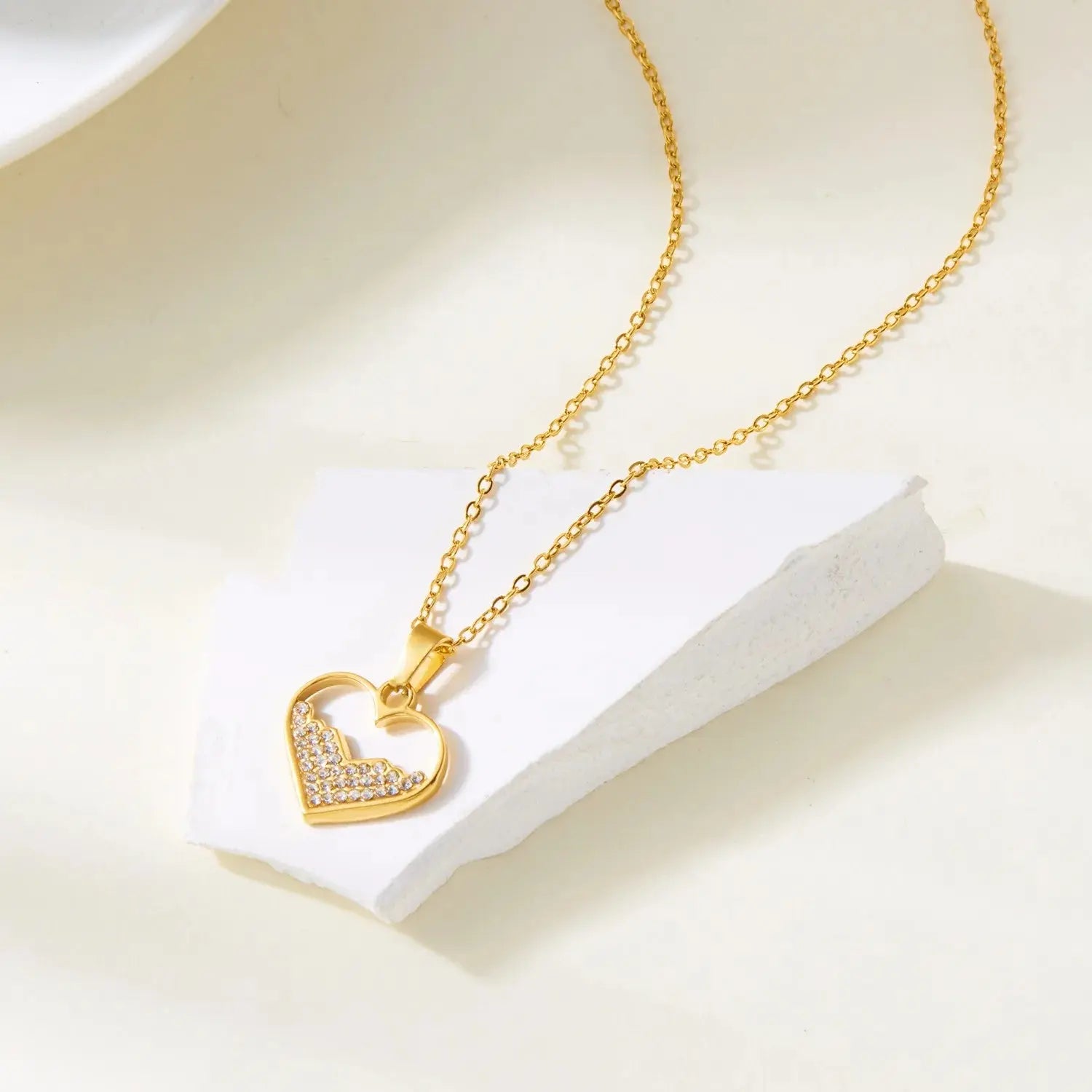 Collier Doré Cœur Strass – Acier Inoxydable – Élégant & Scintillant – "Aya"