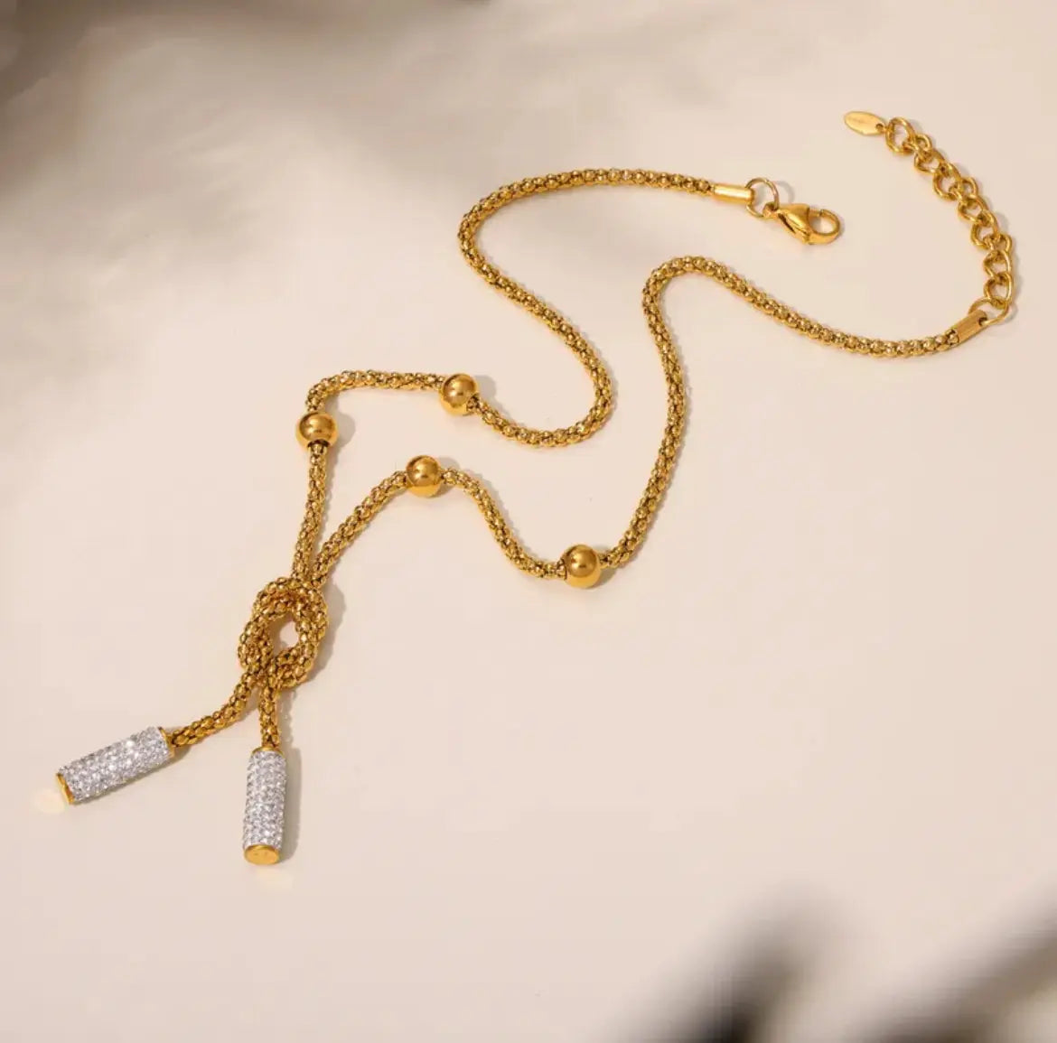 Collier Doré Épais avec Nœud & Zircons – Écrin Offert "Stacy"