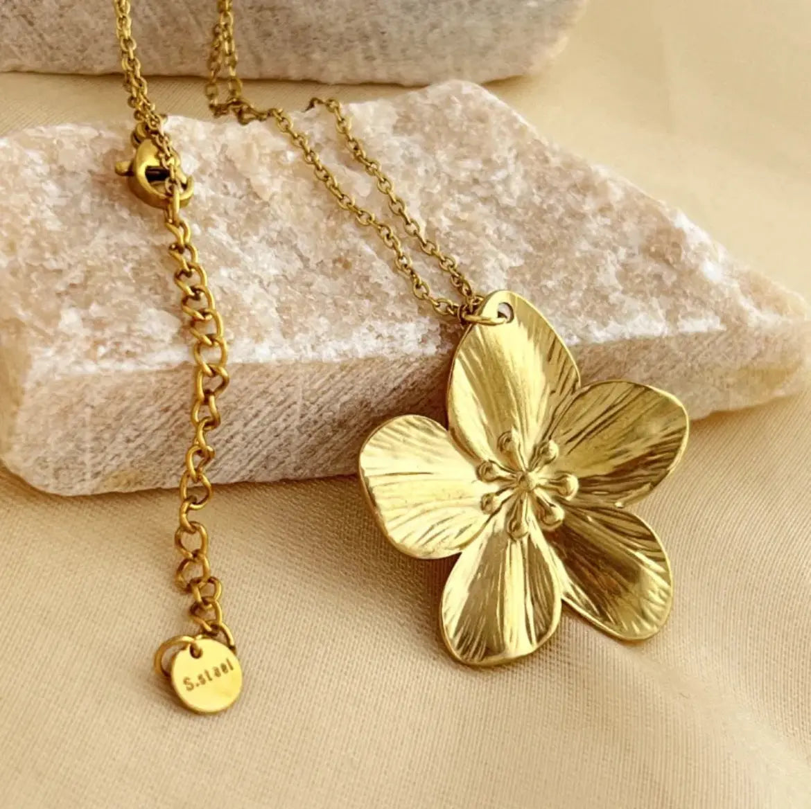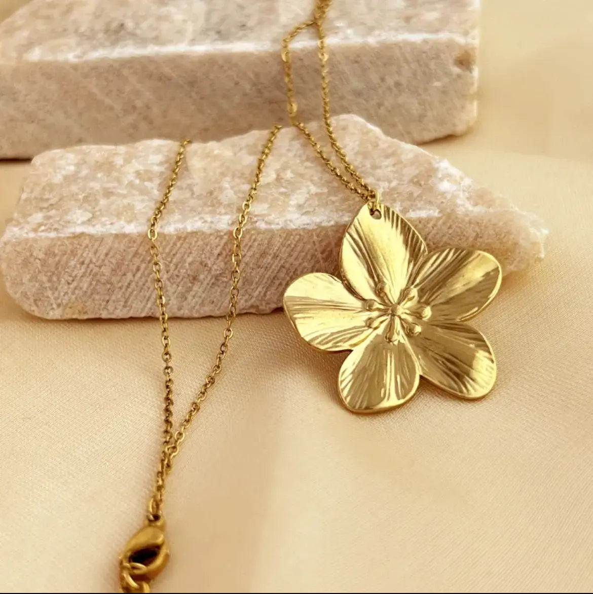 Collier Fleur Dorée Grande Taille – Acier Inoxydable "Flora"