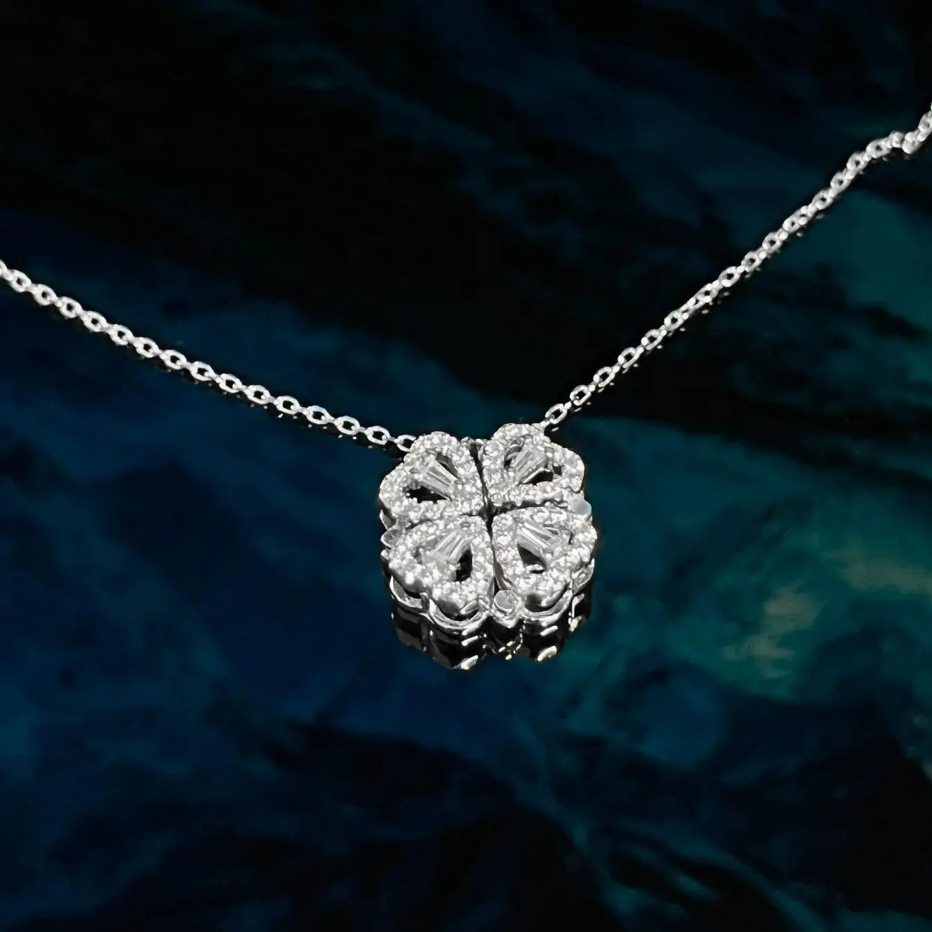 Collier Trèfle Magique Argenté – Se Transforme en Cœurs – Acier Inoxydable "Zena"
