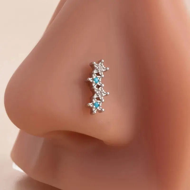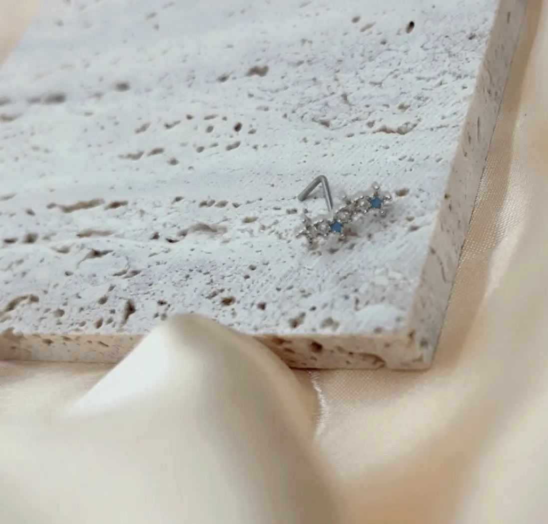 Piercing Nez Argenté Étoiles – Strass Bleu Azur & Blanc – Acier Inoxydable, Tige en L "Tahina Argenté"