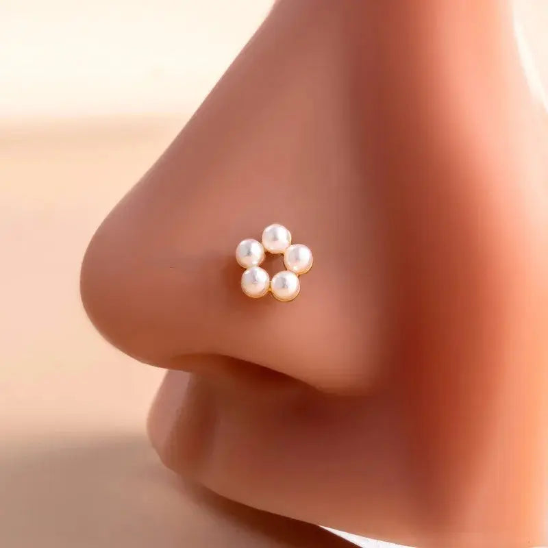 Ce piercing de nez en acier inoxydable doré séduit par son design rond classique, rehaussé de petites perles blanches nacrées tout autour. À la fois minimaliste et raffiné, il apporte une touche de lumière et de douceur à ton visage. Parfait pour sublimer ton style au quotidien ou lors d’occasions spéciales.