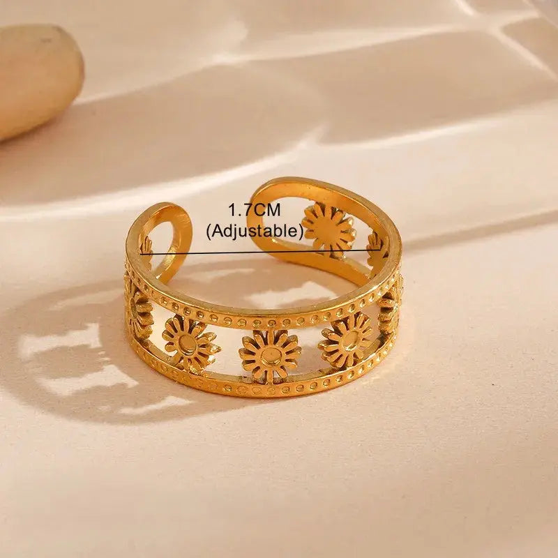Bague Dorée à 8 Soleils – Acier Inoxydable "Soana"