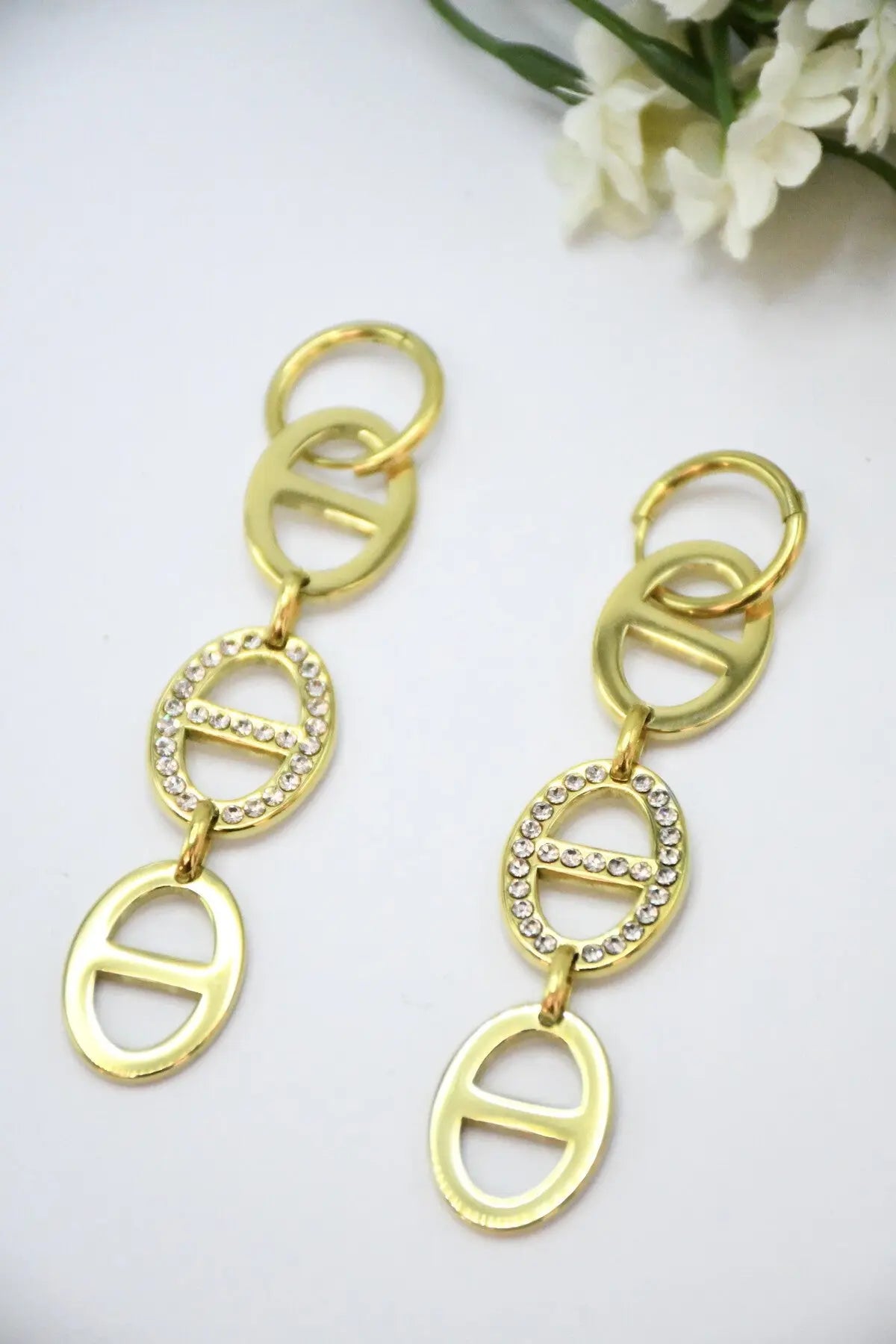 Boucles d’oreilles pendantes grain de café en acier inoxydable doré avec strass "Sama"