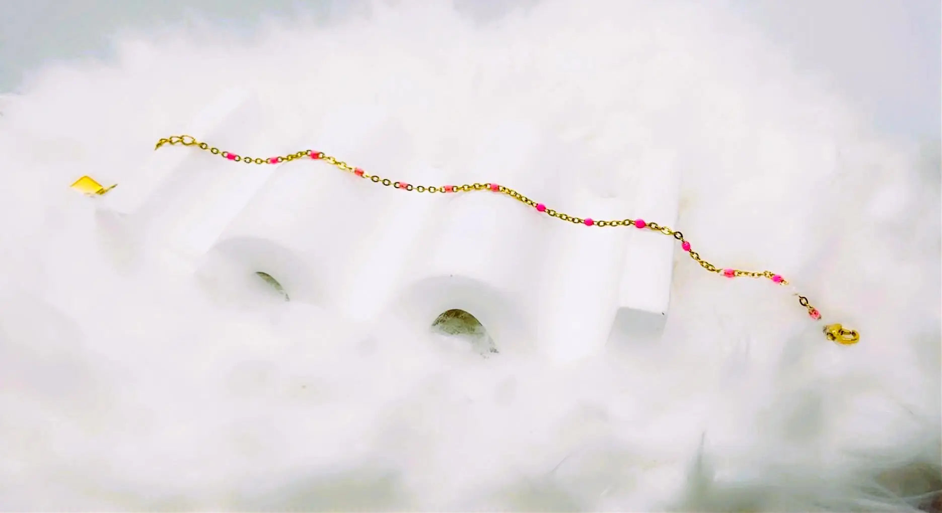 • 1 bracelet doré avec perles rose clair